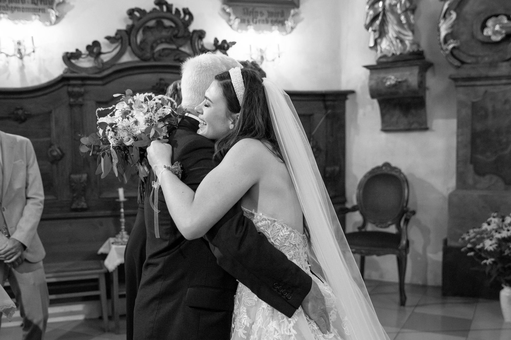 Der Moment direkt nach dem Ja-Wort ist voller Freude, Erleichterung und Liebe. Eure Familien und Freunde kommen zusammen, um euch zu gratulieren. Lächeln, Umarmungen, Freudentränen - genau diese spontanen, echten Momente halte ich für euch fest: ehrlich, lebendig und voller Emotion. Diese Augenblicke sind einzigartig, emotional und voller Wärme, und sie erzählen die Geschichte eures großen Tages auf eine ganz besondere Weise.