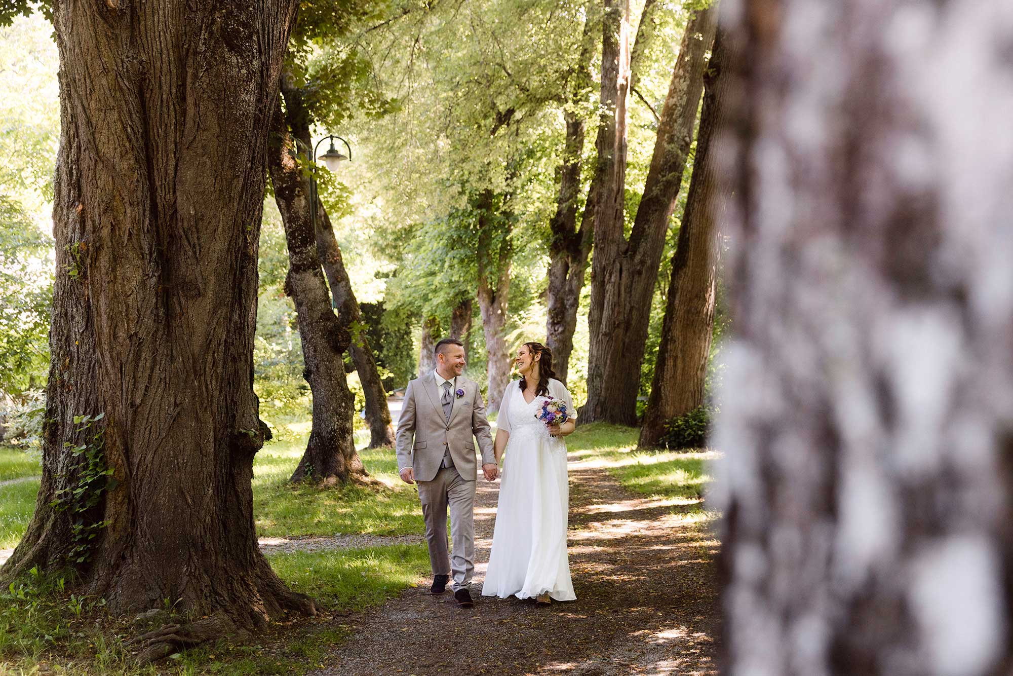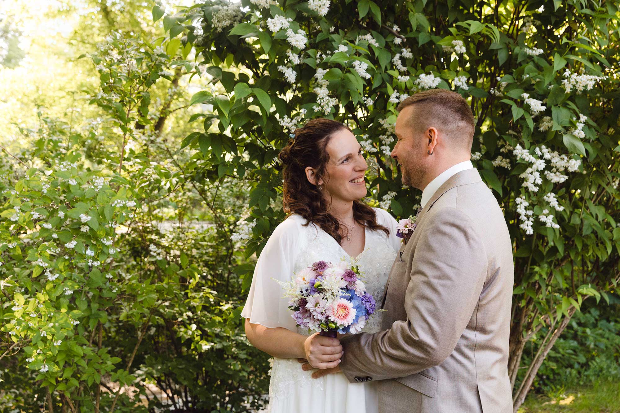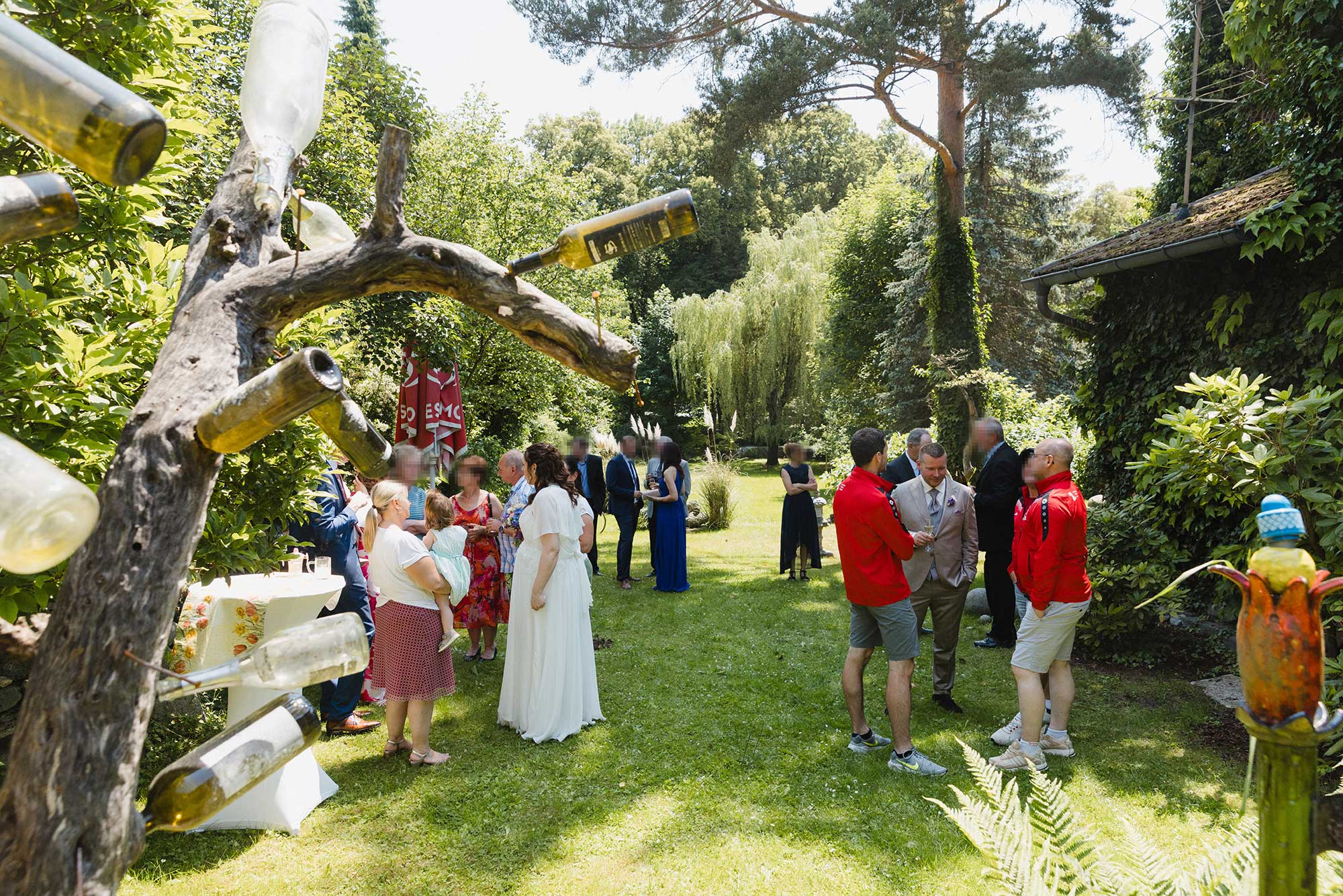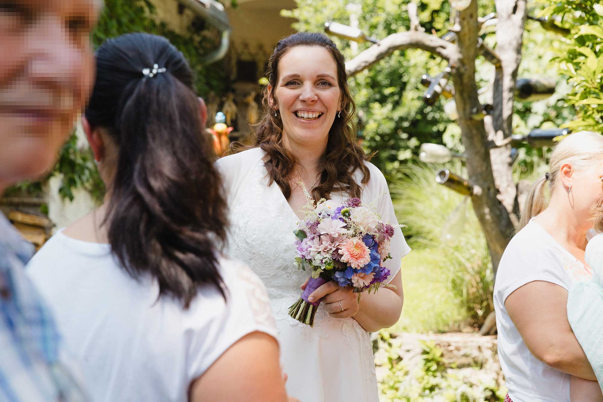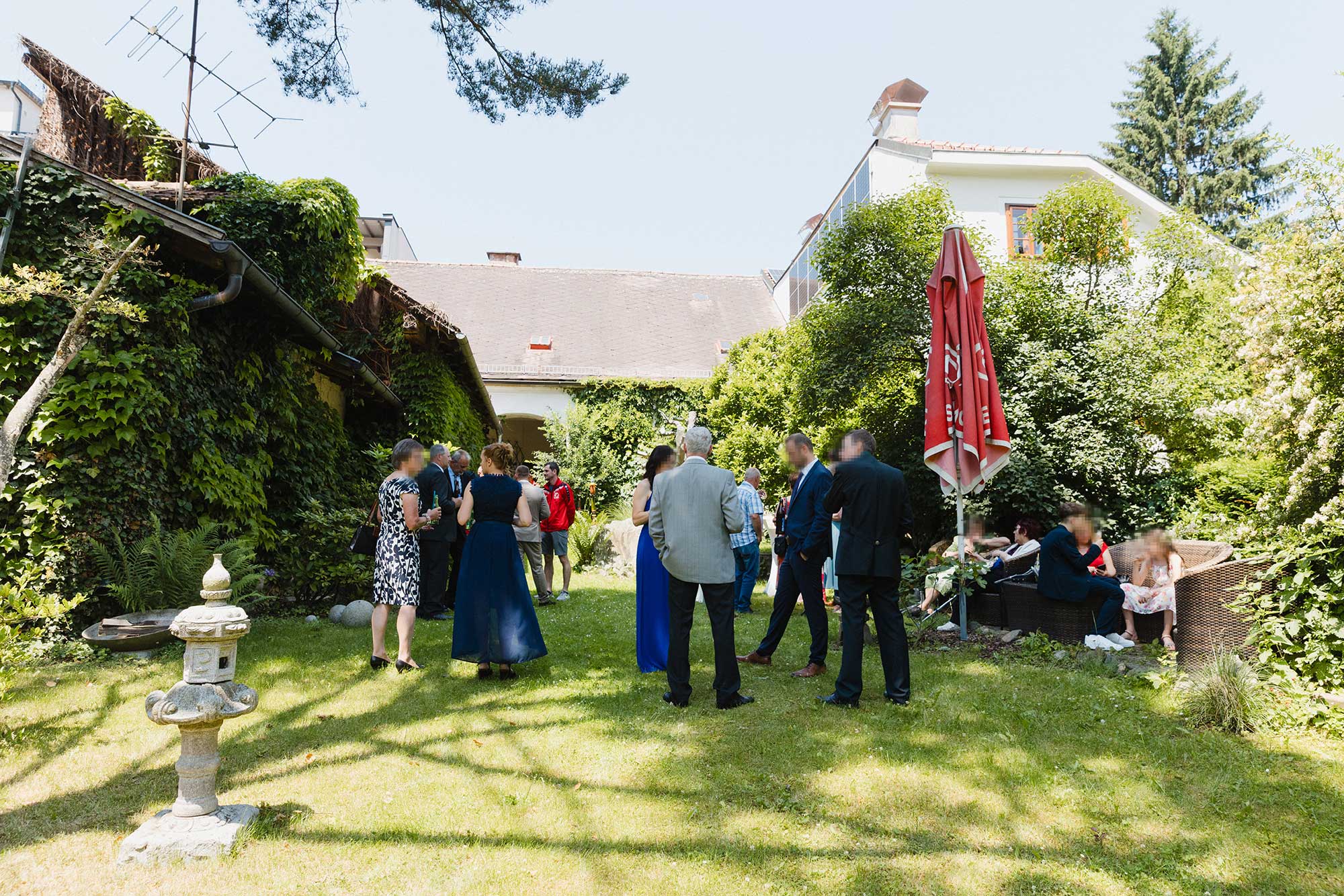 Bei Sonnenschein, lockeren Gesprächen und herzlichen Glückwünschen wurde bei einem gemütlichen Sektempfang im Garten des Café Fenz gemeinsam angestoßen – eine Hochzeit, die zeigt, wie schön und bedeutungsvoll Feiern im kleinen Kreis sein können.