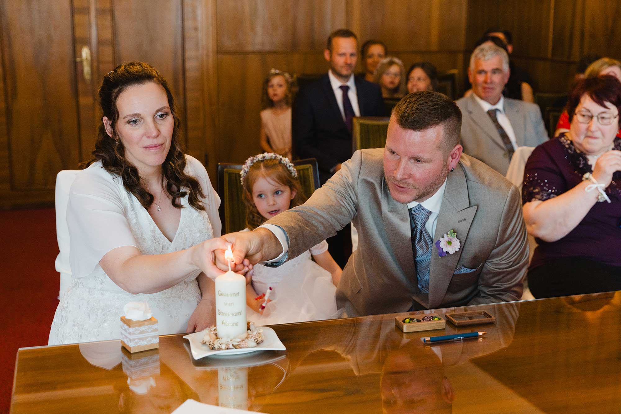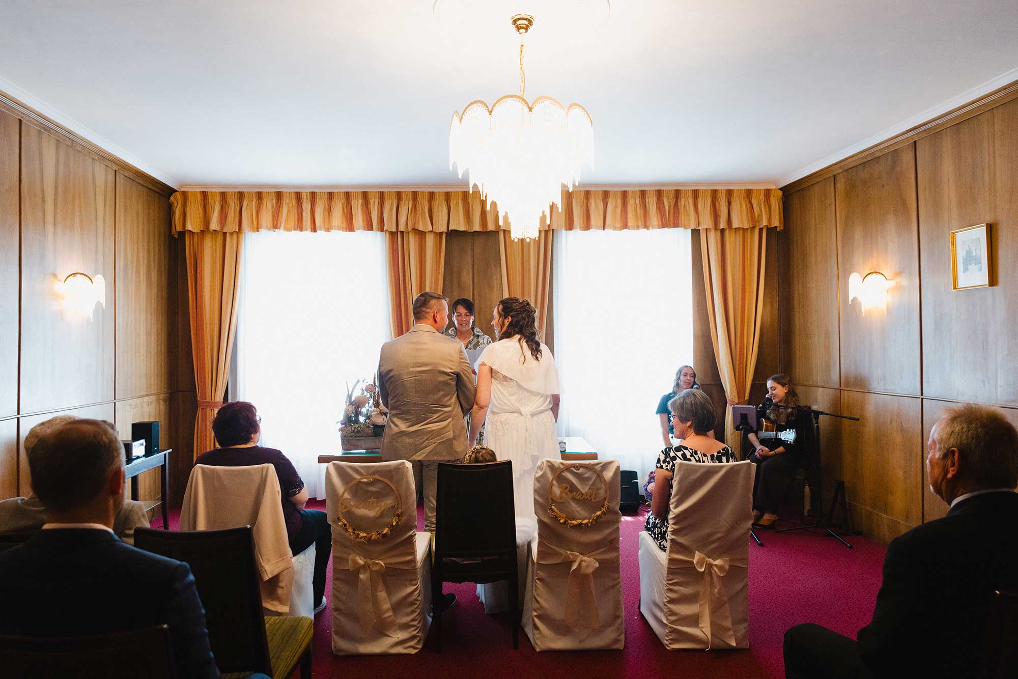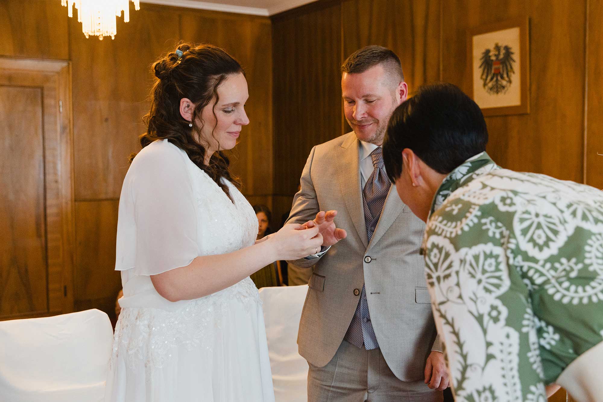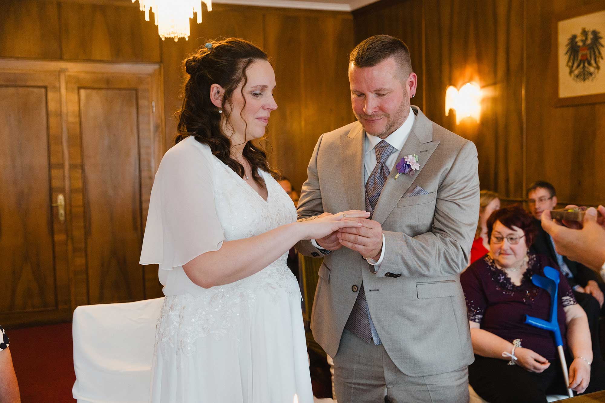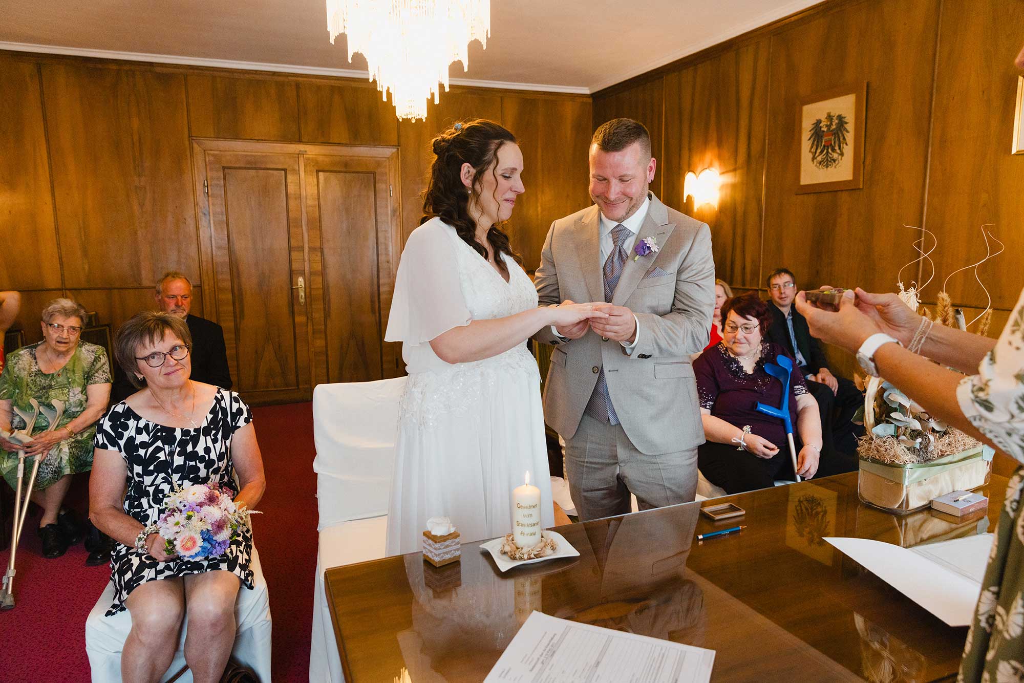 Anschließend ging es für die Trauung ins Standesamt Aspang, wo die Familie bereits auf das Brautpaar wartete. In feierlicher Atmosphäre gaben sich Carina & Martin im Kreis ihrer wichtigsten Menschen das Ja-Wort.